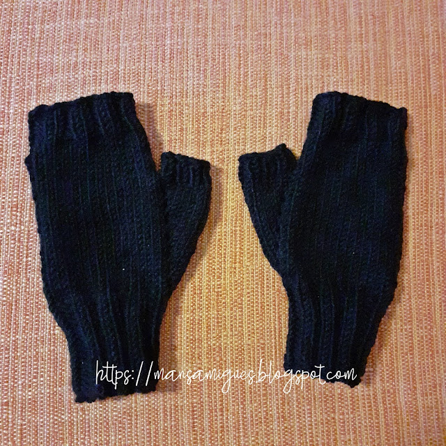 A mi hermana por su santo le hice unos mitones de color negro que me pidió: